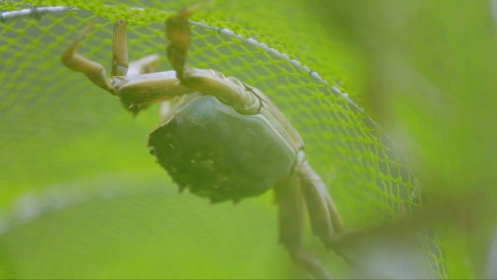 近日,在甘肃省定西市安定区鲁家沟镇的凤城湖养殖基地,6万只人工养殖的中华绒螯蟹蟹黄正肥,收获时节随之而至。